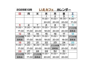 Home 未分類2025年10月のカレンダー♪2025年10月のカレンダー♪ 2025.09.29 未分類 Shareちょっとづつですがホットコーヒーの季節になっていますね♪いえカフェのコーヒーでほっとした気分を味わって下さいな(#^^#)